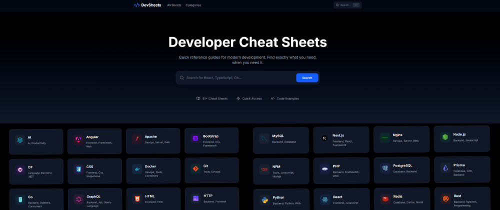 標題:我建立了 DevSheets.io - 一個開發人員的現代備忘單網站(以及為什麼我們仍然需要它們)