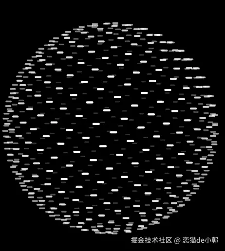 trails == 0 時,使用 canvas.drawCircle 畫圓點trails > 0 時,使用 canvas.drawLine 畫線,線的長度由 trails 參數乘以透視系數決定,因為球在水平旋轉,我們在水平方向畫一條短線,大腦就會自動腦補成「這是因為轉太快留下的殘影」實際上我還在自己的個人首頁上將上面了兩種動畫,讓 AI 轉化為 js+css,讓個人首頁看起來更加花里胡哨: