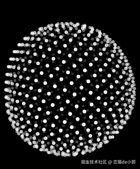 所以 AI 首先需要的是實現一個球體算法,核心思想是將原本在 2D 平面上畫向日葵種子的「黃金螺旋」算法,投影到了 3D 球面上,具體是利用黃金角 (Golden Angle) 來決定每個點的角度偏移: